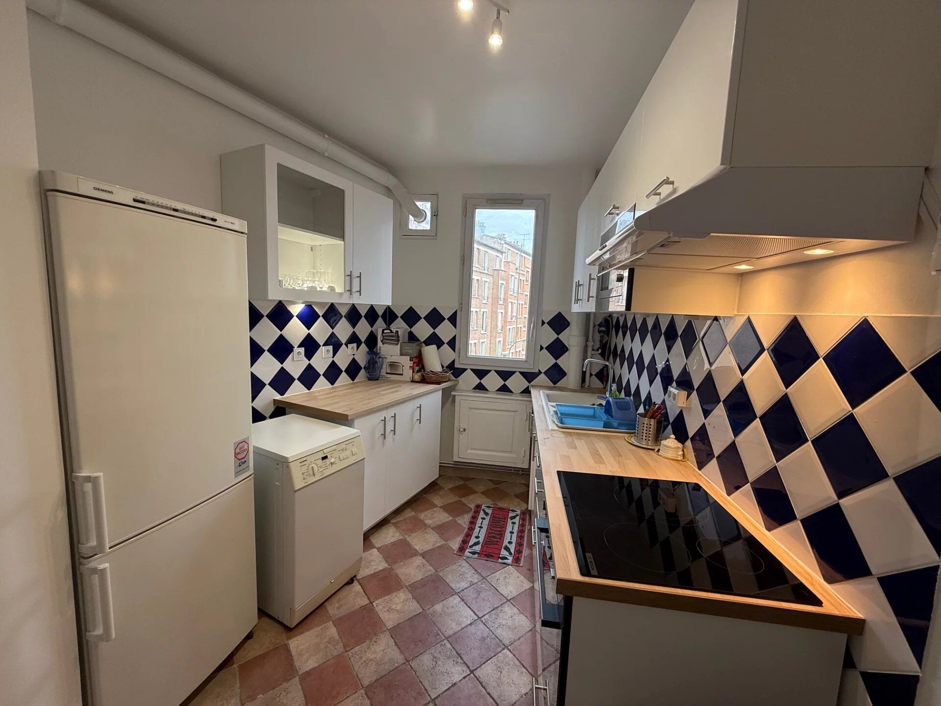 95 rue de la Jarry, au 4ème étage avec ascenseur d'une copropriété des années 30 entretenue, beau F2 en bail meublé composé d'une entrée avec rangements, un séjour lumineux, une grande chambre avec douche et placards, une grande cuisine, une salle d'eau avec wc.